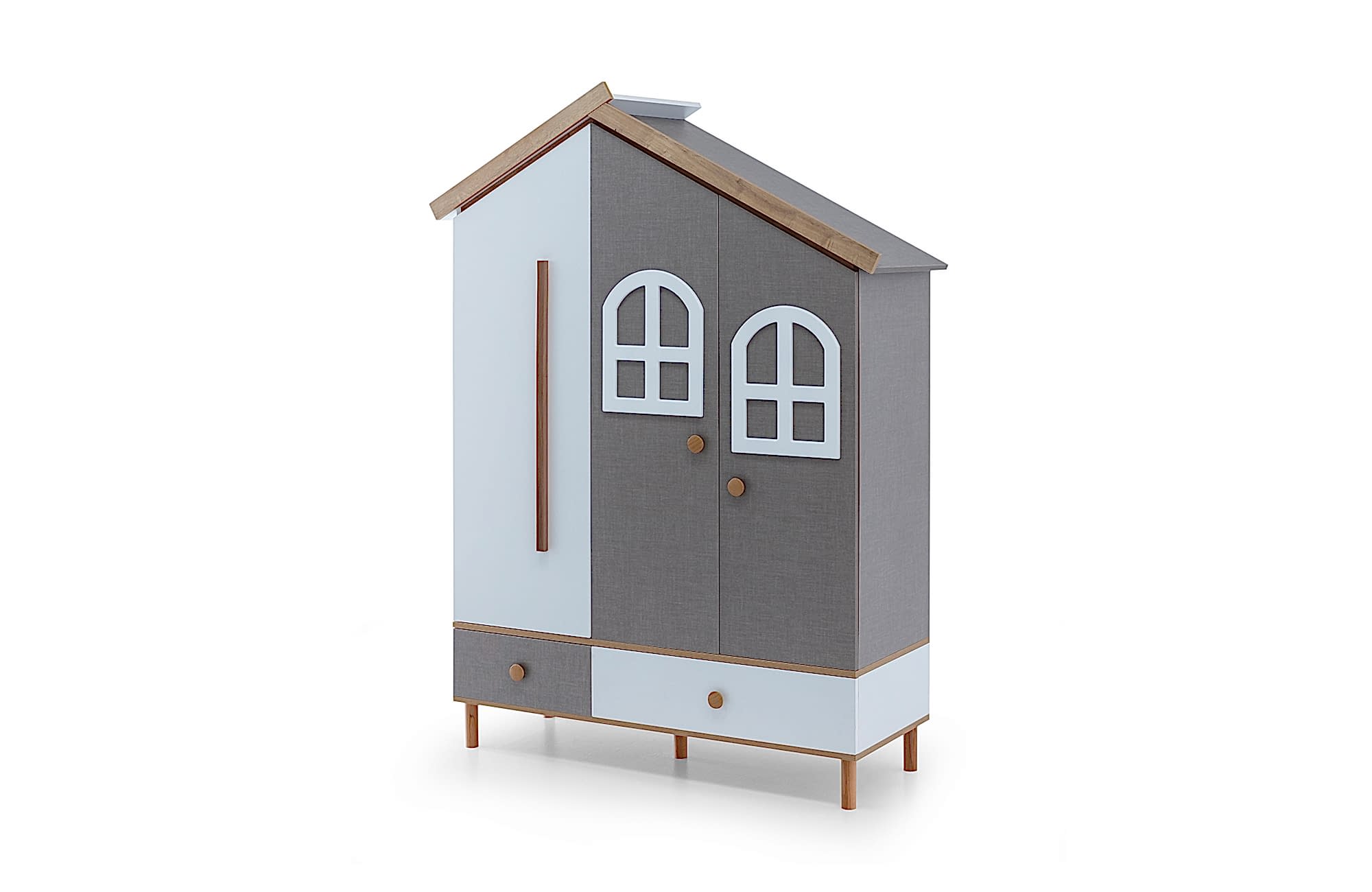 Miniklerin iç dünyasından ilham alan Fargo Çocuk Odası Takımı, sade şıklığı ve sıcak detaylarıyla hem kalpleri hem odaları ısıtıyor. Ev formundaki karyola başlığı ve pencere motifli dolap tasarımı, çocuğunuzun odasını bir masal diyarına dönüştürüyor.