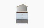 E1 kalitede 18 mm kalınlığında bohça, beyaz renk melamin kaplı yonga levha; EN 71-3 sertifikalı boyalarla tamamlanan ahşap kulp, ayak parçalarıyla buluştu. PVC kenar bantları hem estetik görünüm sağlıyor hem de güvenli bir dokunuş sunuyor.